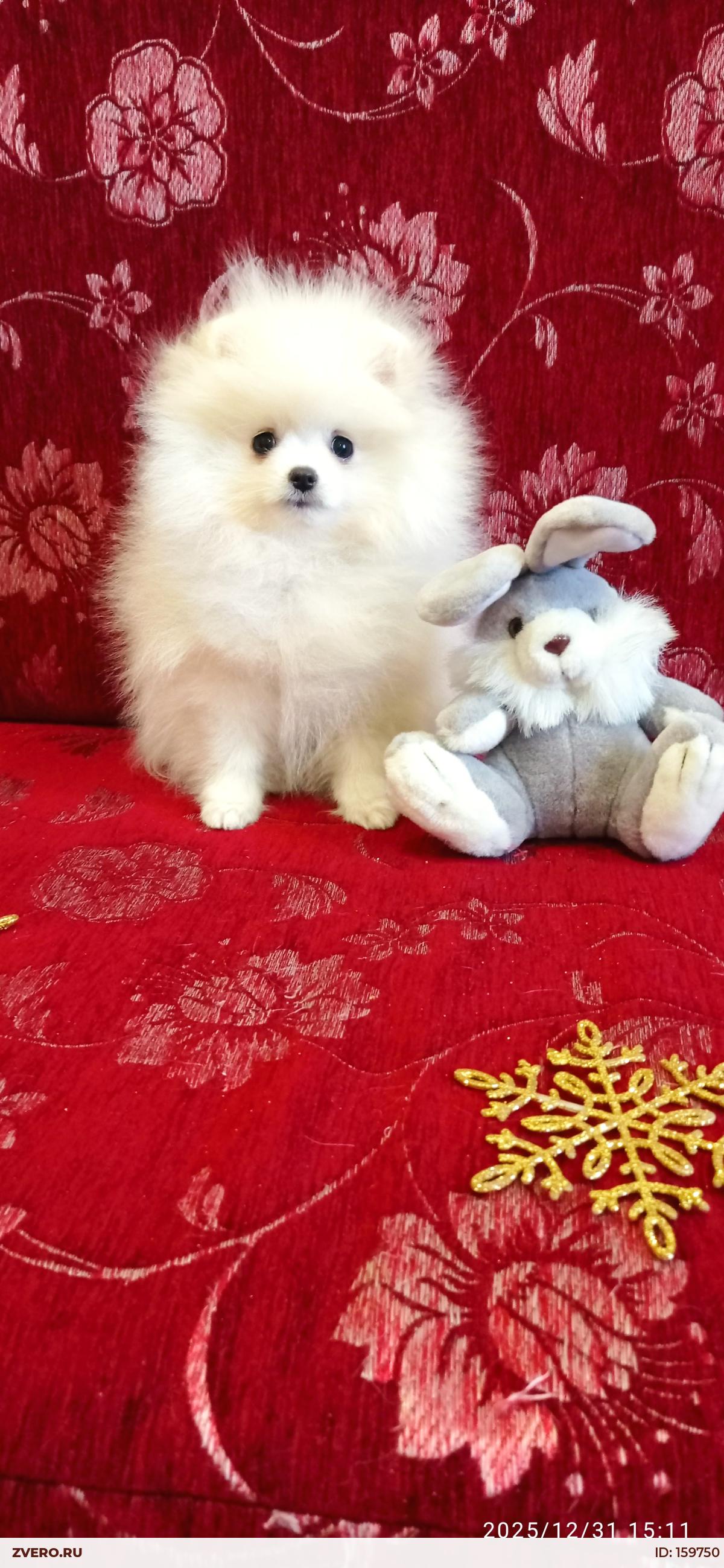 Белоснежный померанский шпиц мальчик от чемпионов