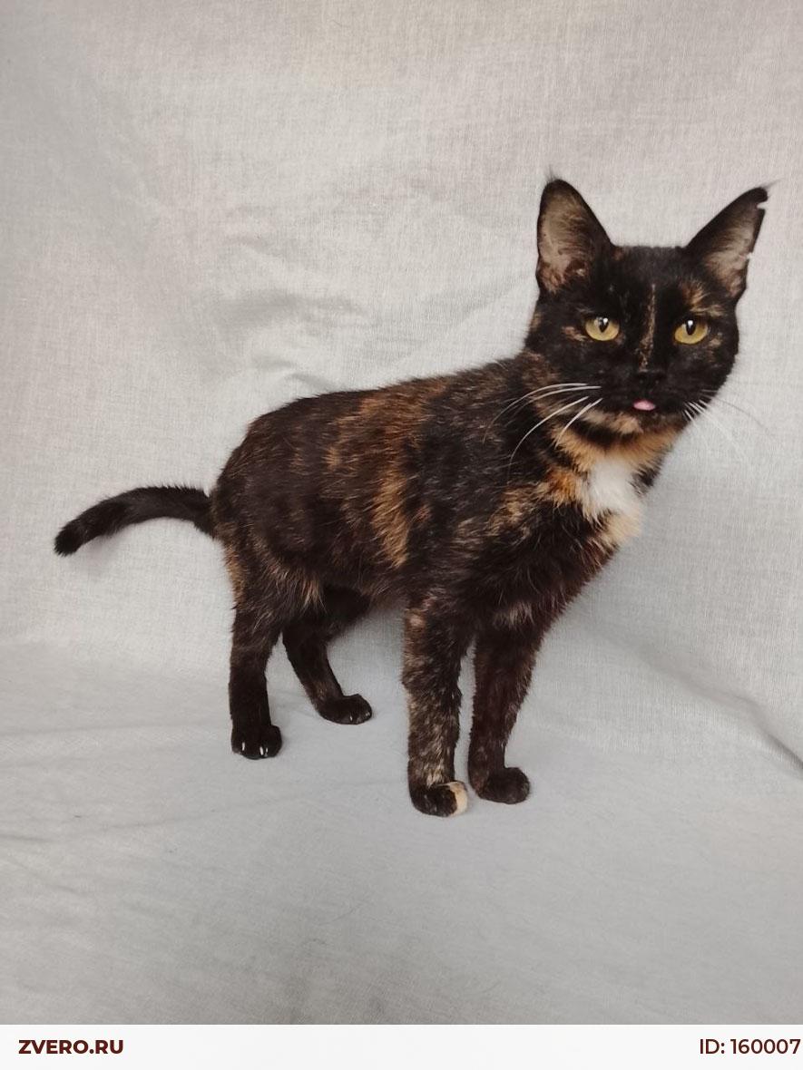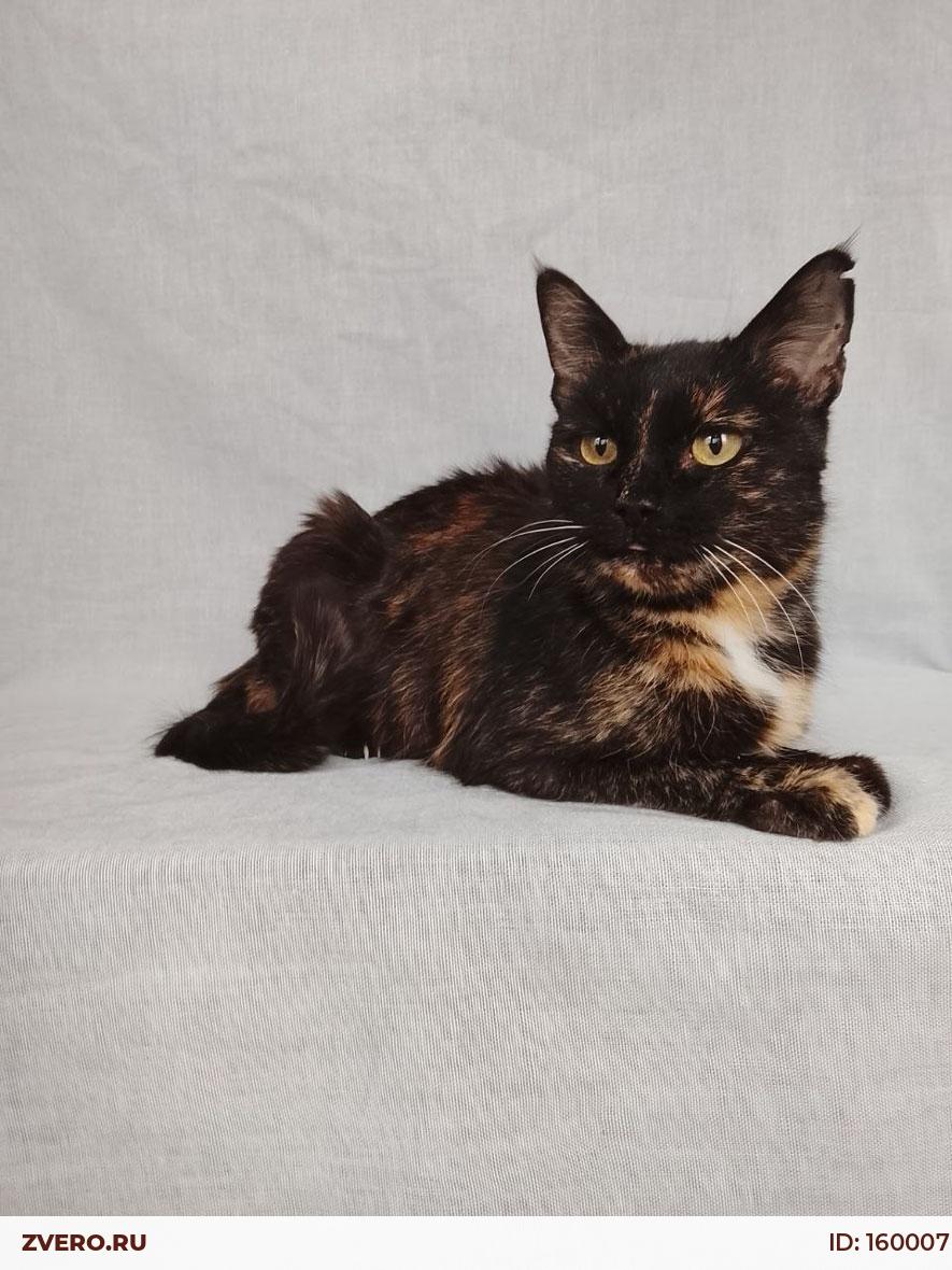Миниатюрная черепаховая кошечка выглядит, как подросток, однако Мурка взрослая, ей примерно 7 лет.