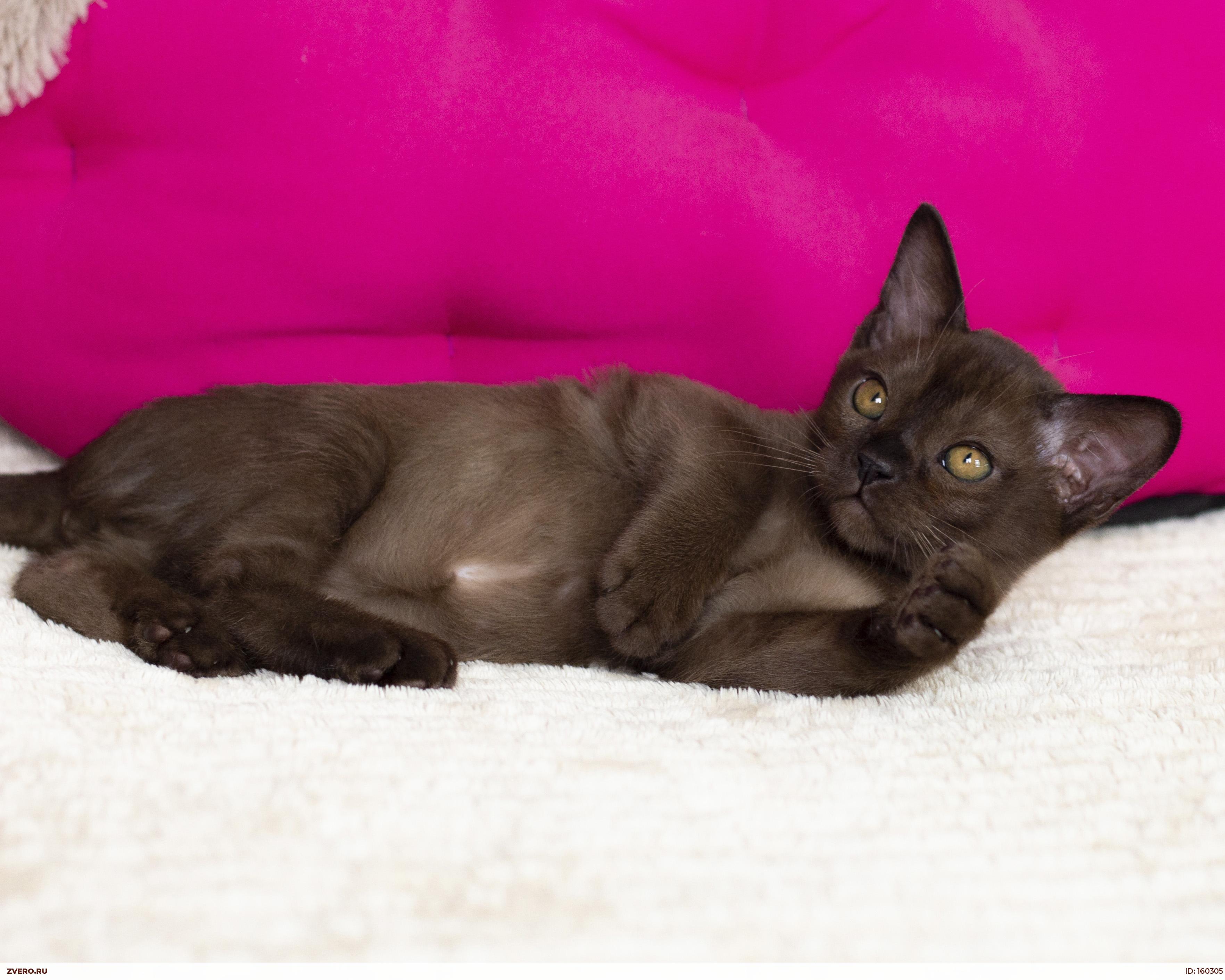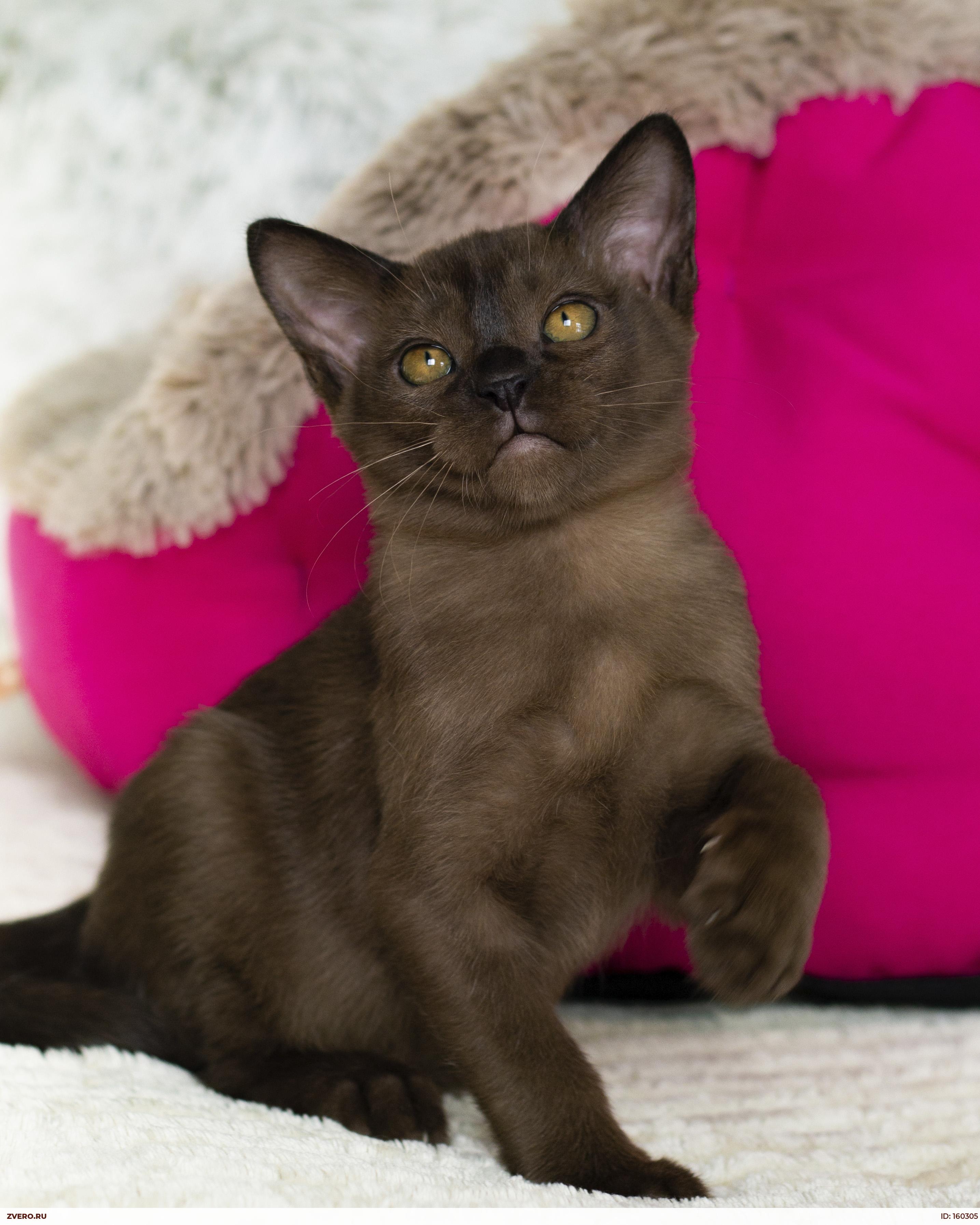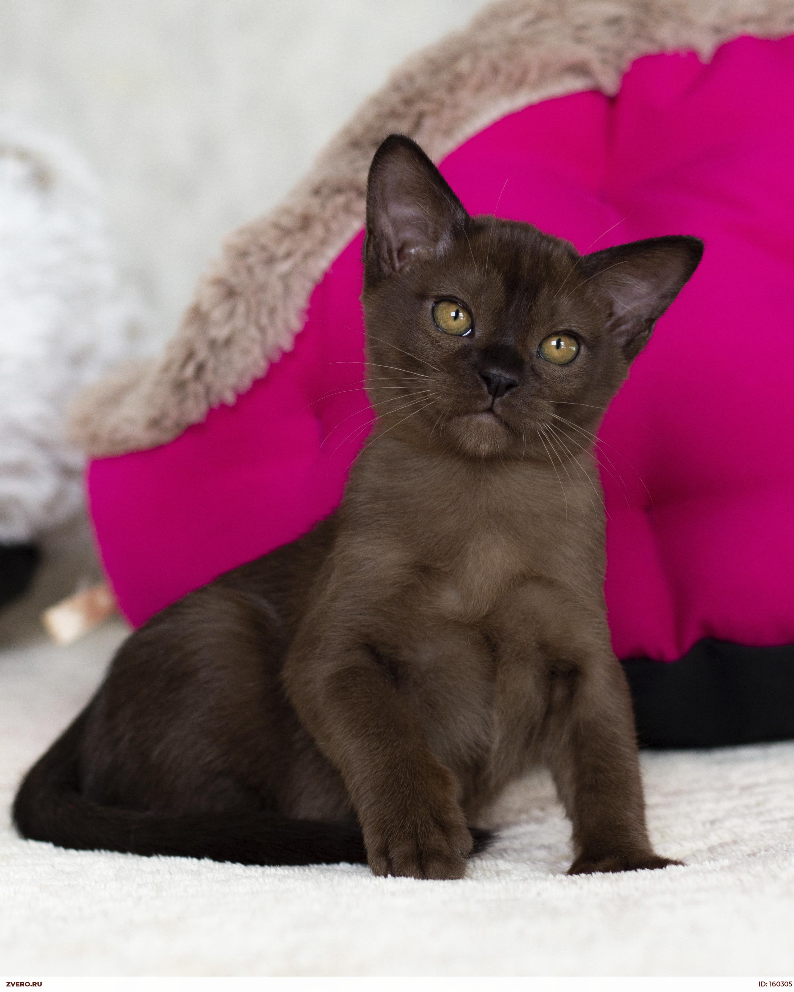 Малыш обладает прекрасными породными данными-великолепная мордочка с тяжелым взглядом, присущим настоящей бурме, крепкое и мускулистое тело с сильными лапами и уверенным хвостом! Замечательный соболиный окрас со временем приобретет максимально темный окрас и будет блестеть чёрно-коричневым!