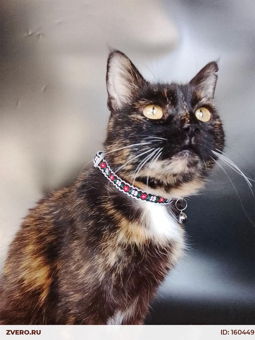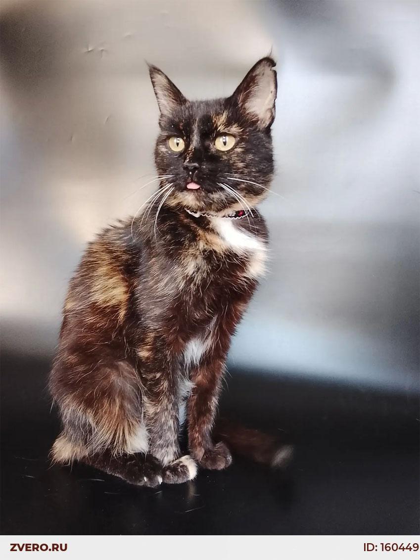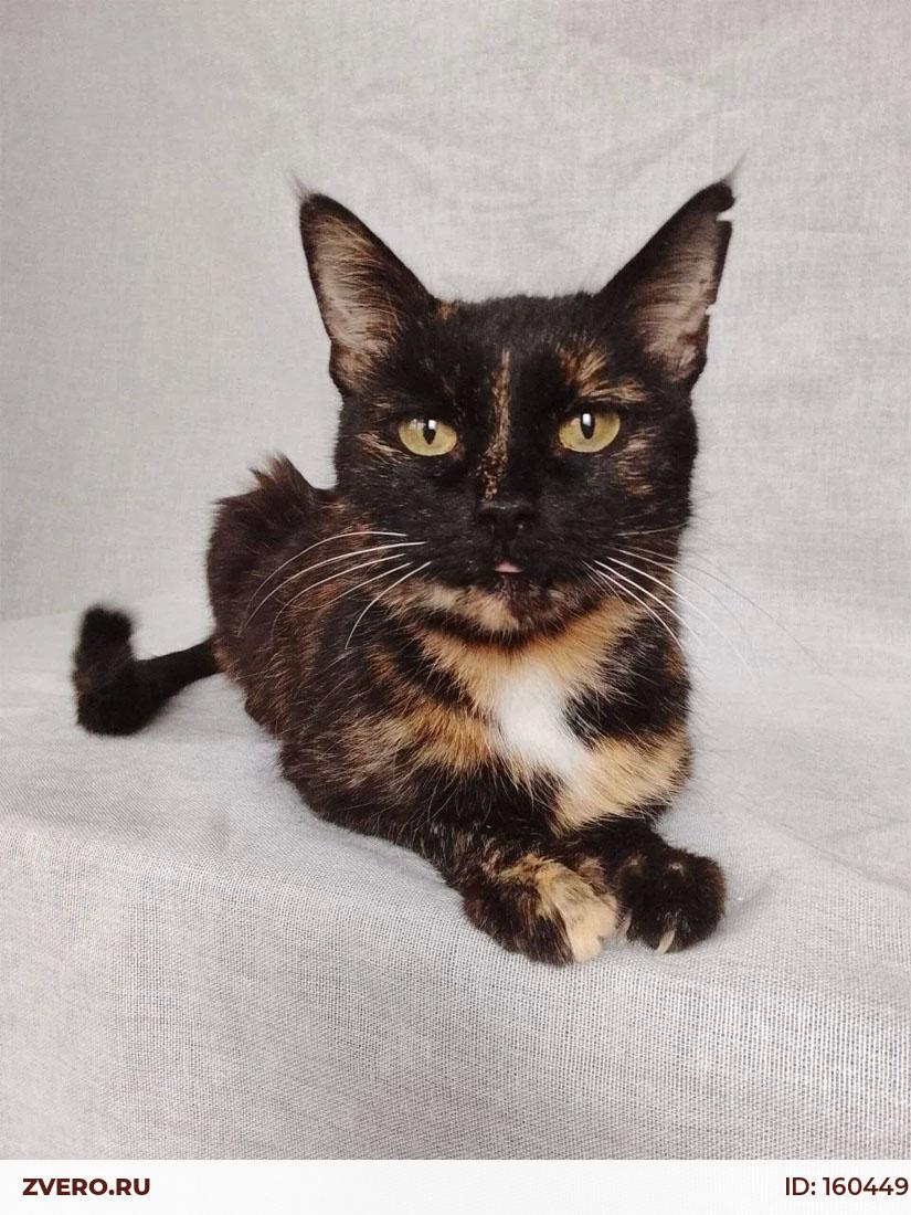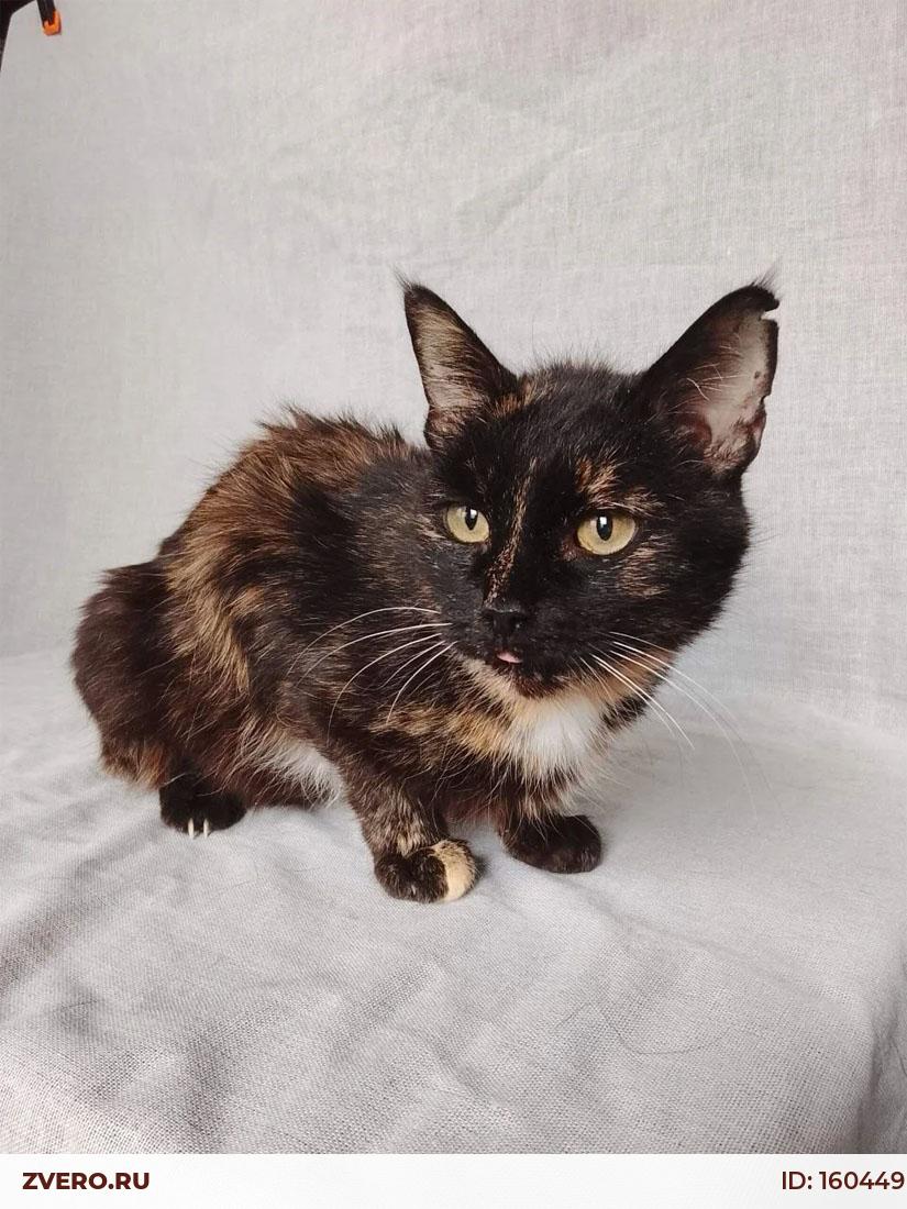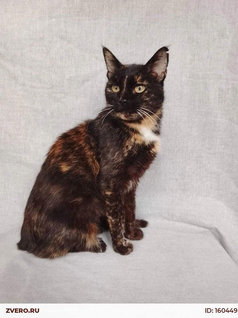 Миниатюрная черепаховая кошечка выглядит, как подросток, однако Мурка взрослая, ей примерно 7 лет.