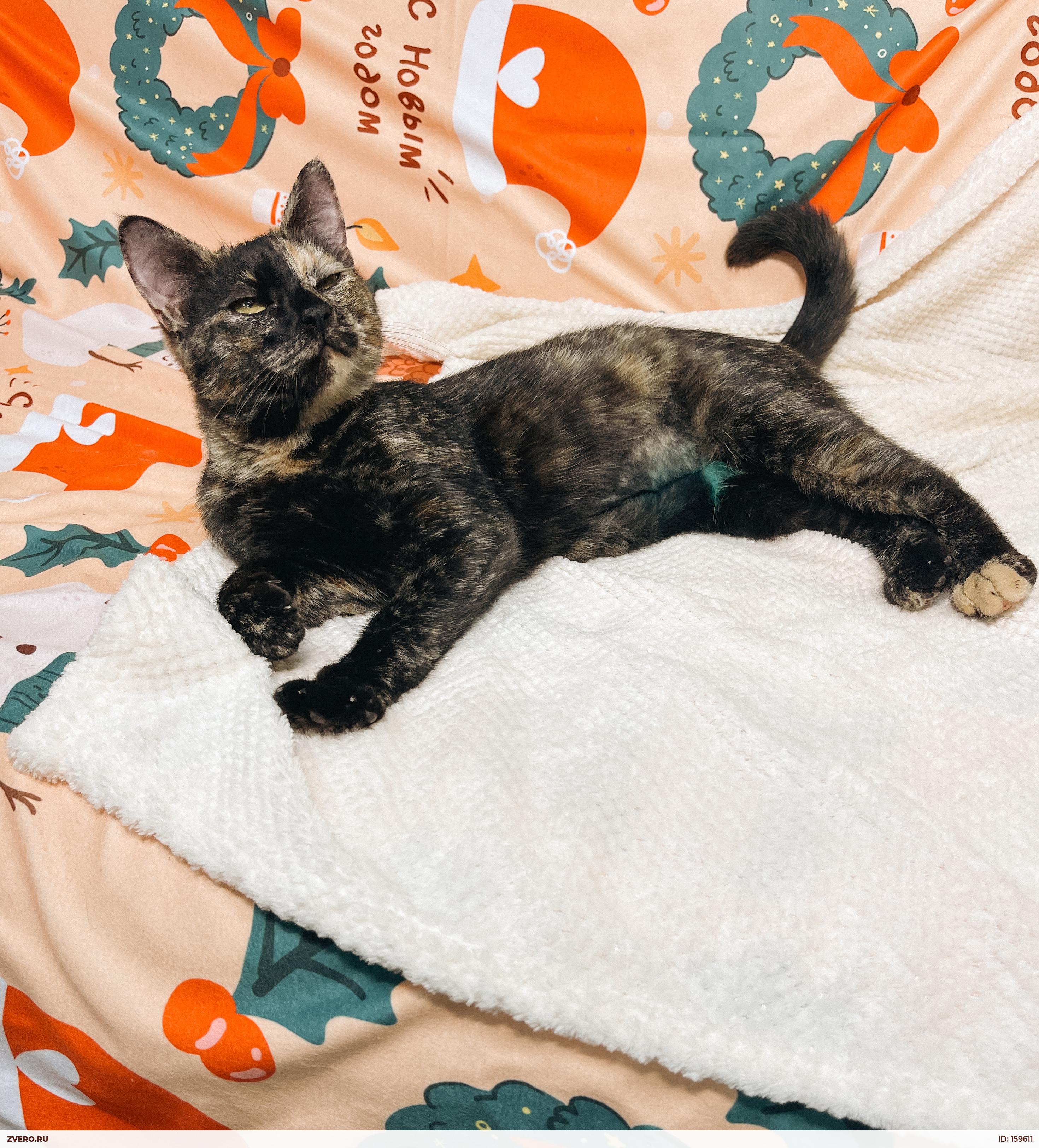 Котёнком она оказалась на улице и какое-то время жила у кафе, откуда мы её забрали на кастрацию, и в приют. Вернуть её обратно на улицу было невозможно: такая ласковая, тянется к человеку, что оставить её на улице — настоящее преступление.