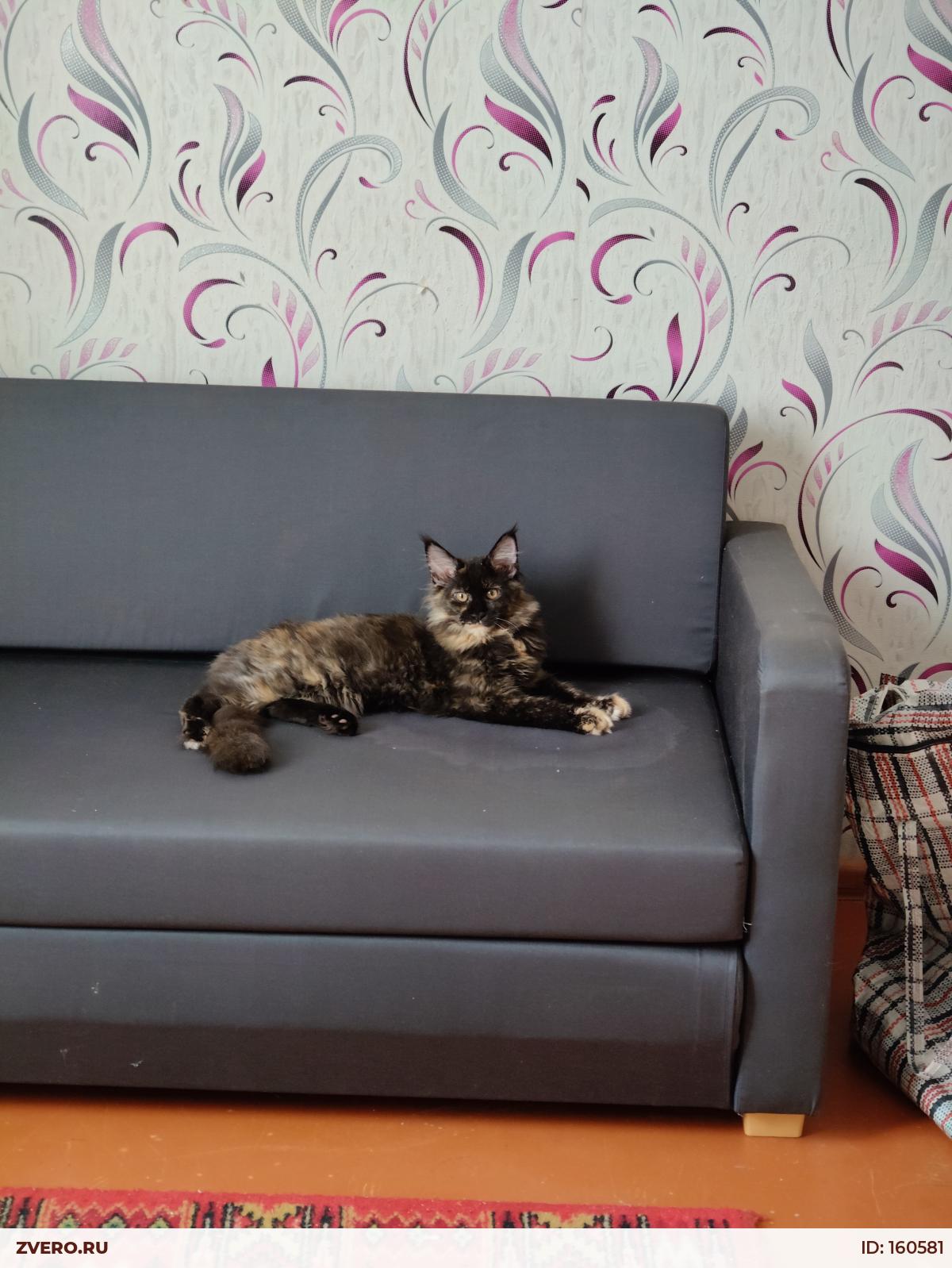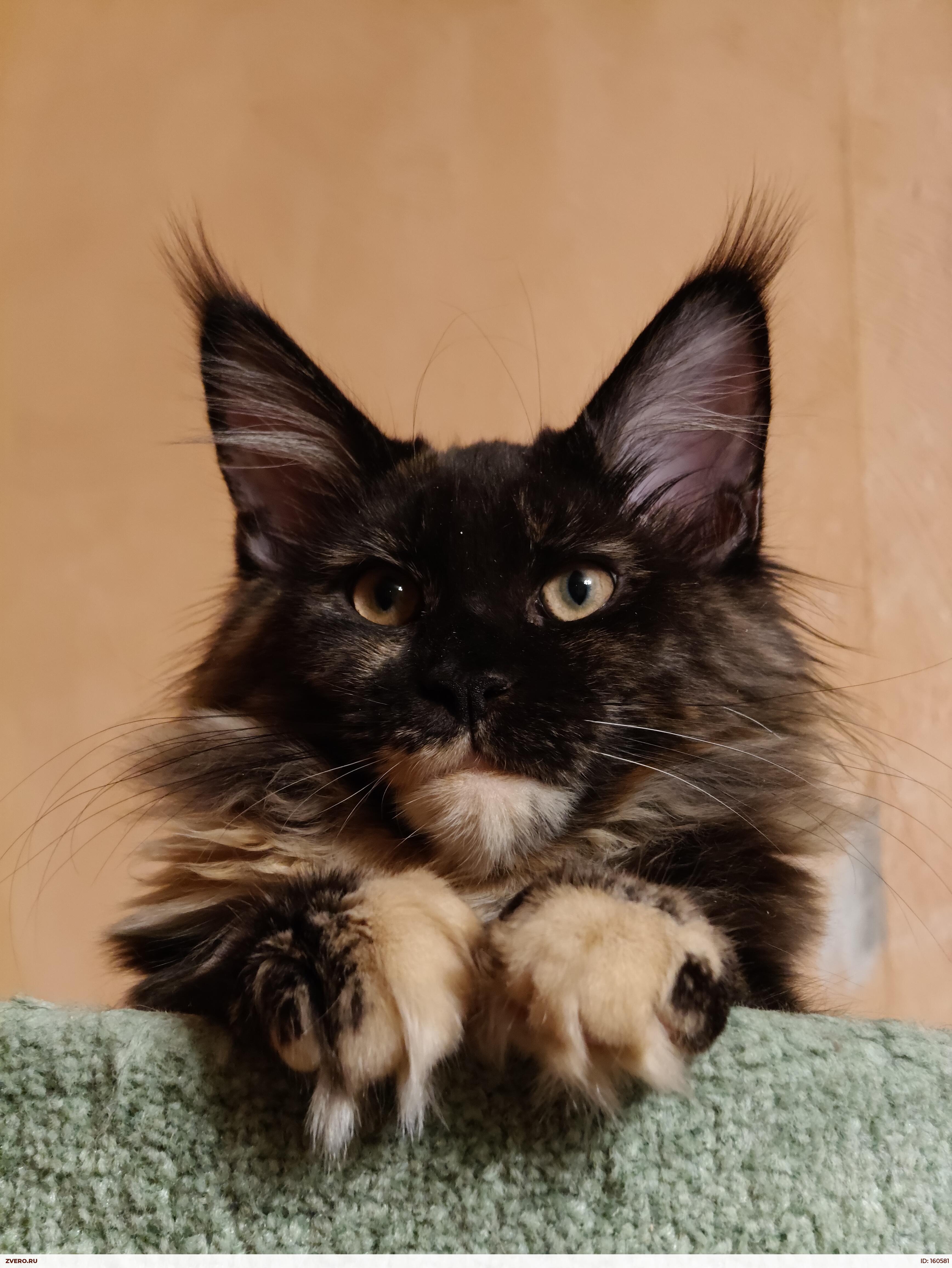 С прекрасной коробочкой без "скосов", классический тип, длинные кисточки. Вырастет крупной кошкой ( мать-7,5 кг, отец - 13 кг) .